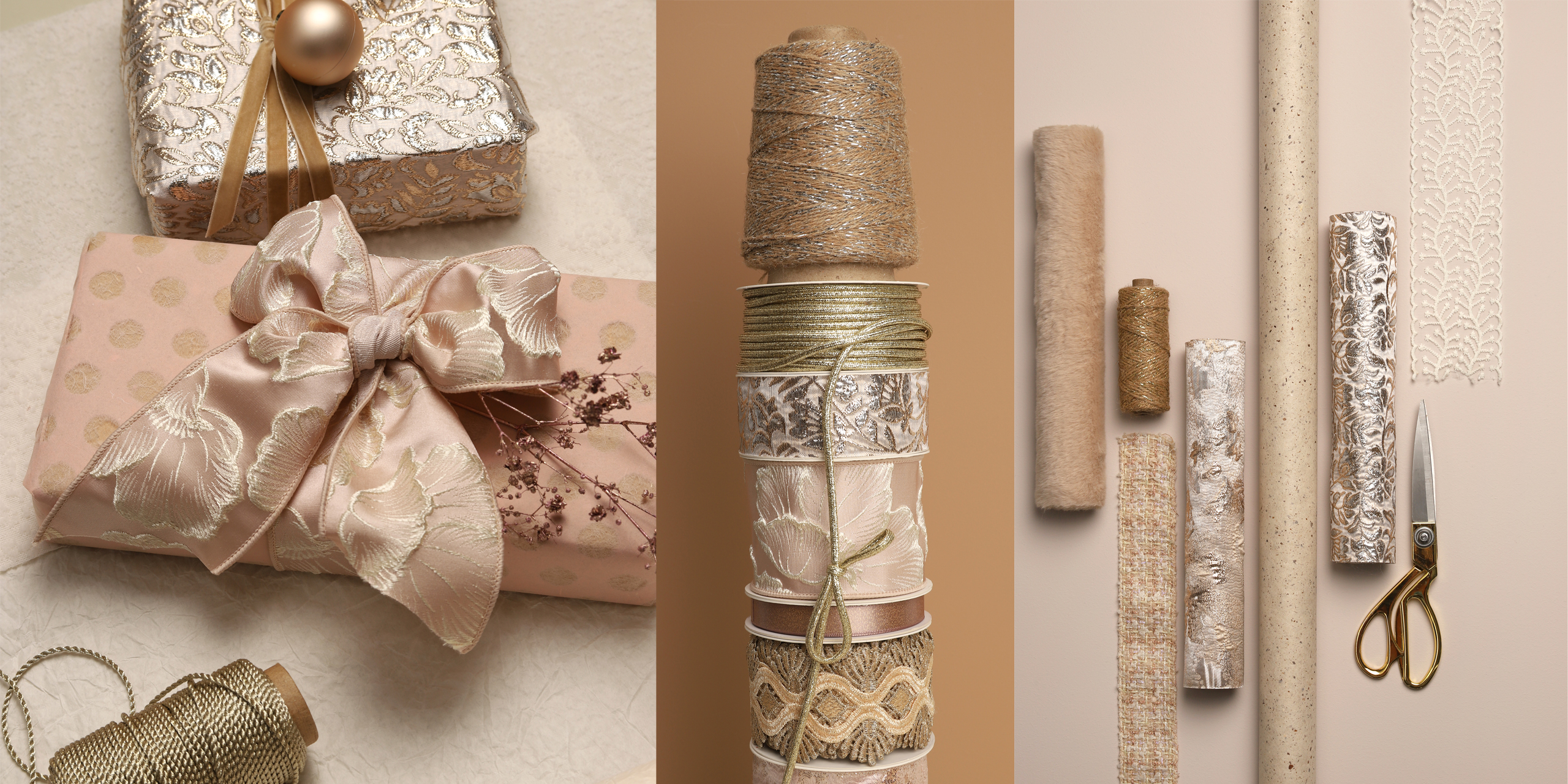 Zacht en dromerig wintergevoel. Sneeuwachtige materialen en fonkelende texturen creëren een magische sfeer. Bloemmotieven en rococo-vormen brengen klassieke elegantie, alsof alles verandert in een balzaal. Het palet van wit, crème, roos, lichtblauw, goud en irisé straalt winterse verfijning uit.